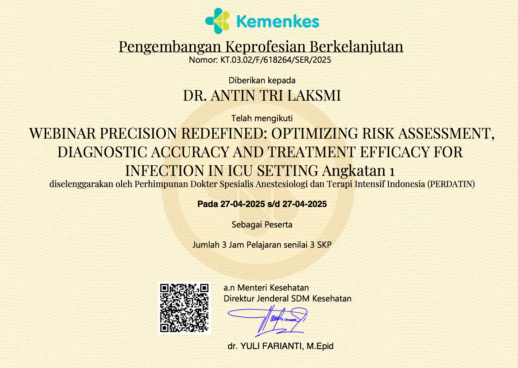 WEBINAR PRECISION REDEFINED: OPTIMIZING RISK ASSESSMENT, DIAGNOSTIC ACCURACY AND TREATMENT EFFICACY FOR INFECTION IN ICU SETTING Angkatan 1