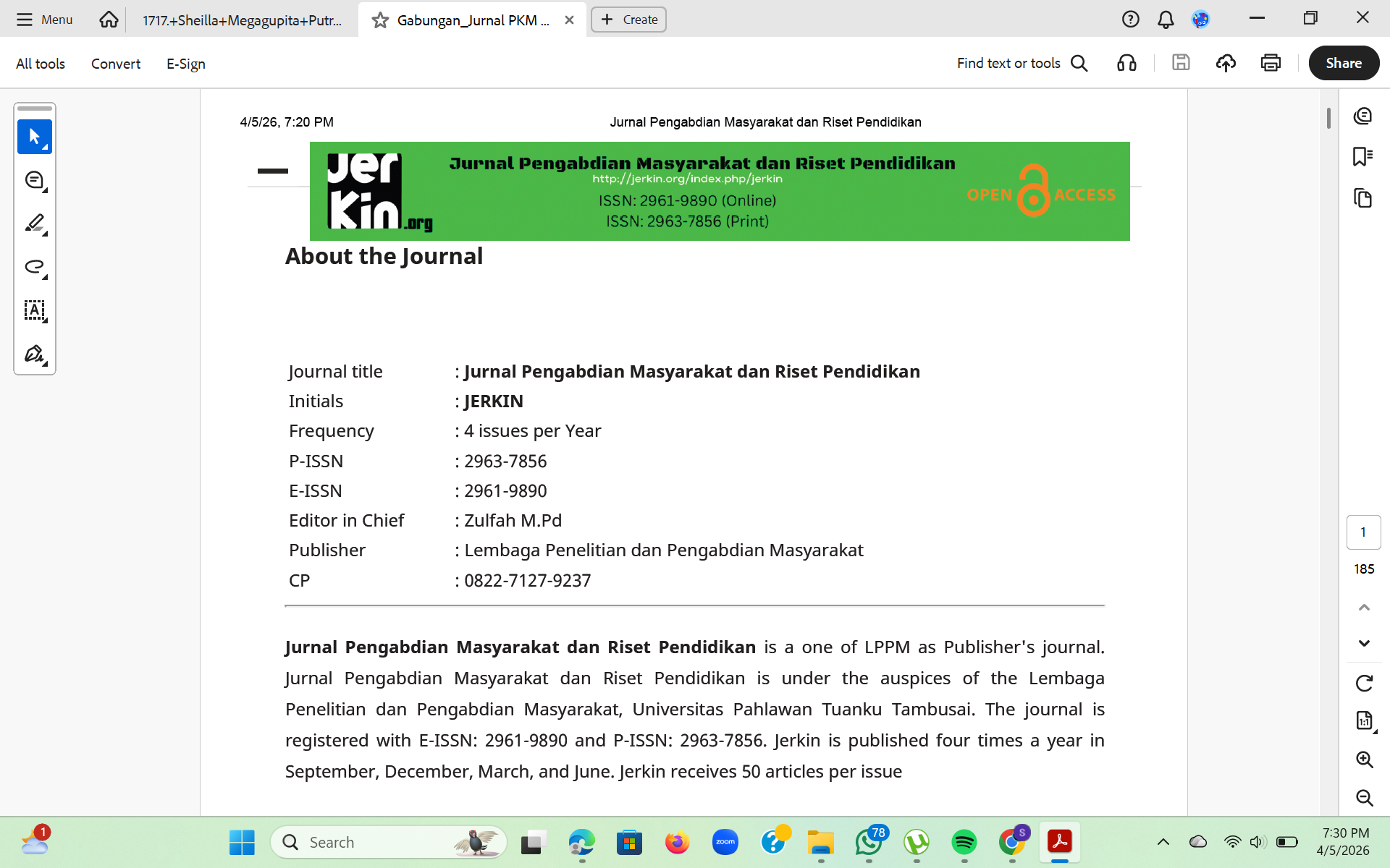 Bukti Jurnal Jerkin PKM Edukasi Pengelolaan Air