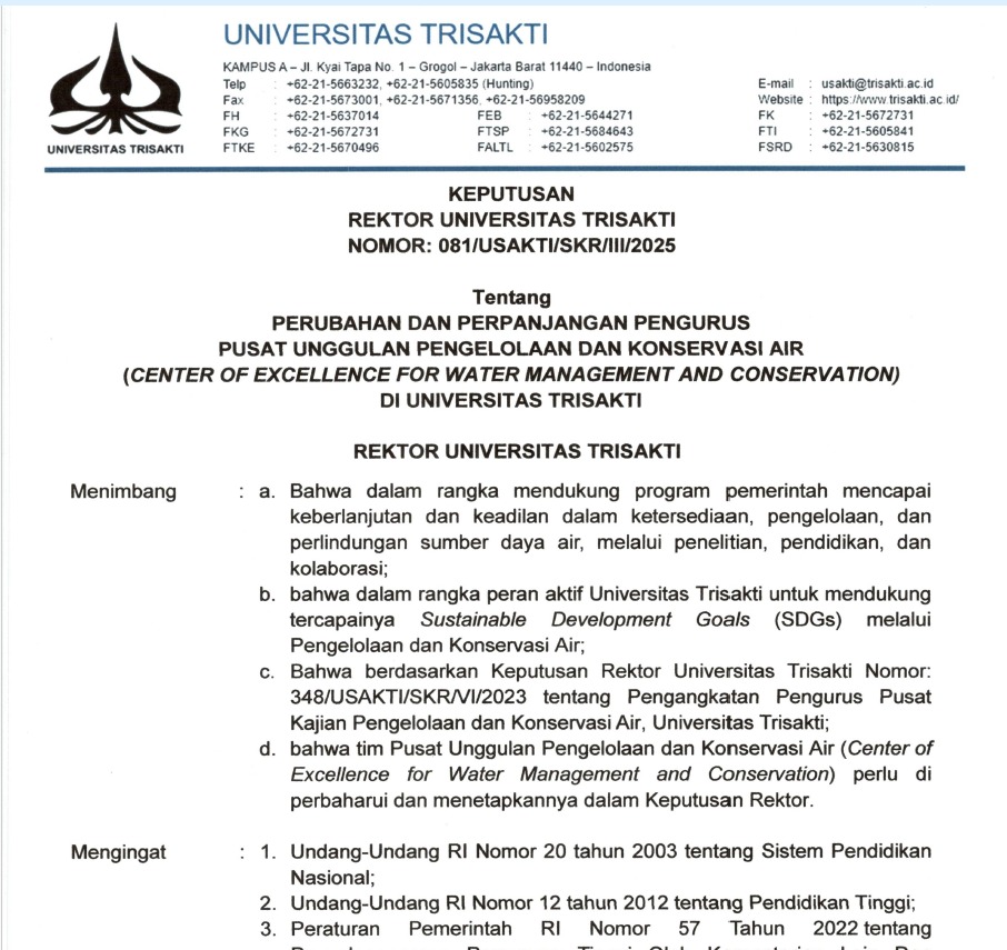 SKR Ketua Pusat Unggulan Pengelolaan dan Konservasi Air