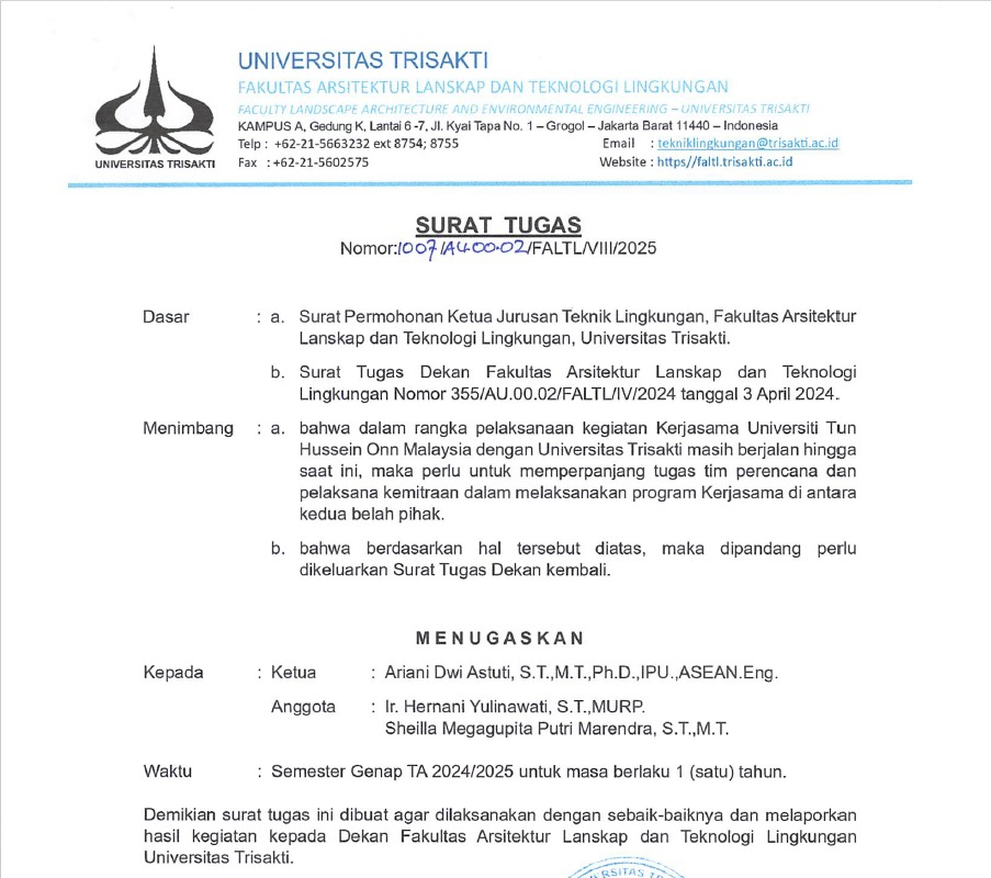 Surat Tugas Ketua Tim Perencana dan Pelaksanan Kemitraan Program Kerjasama Internasional