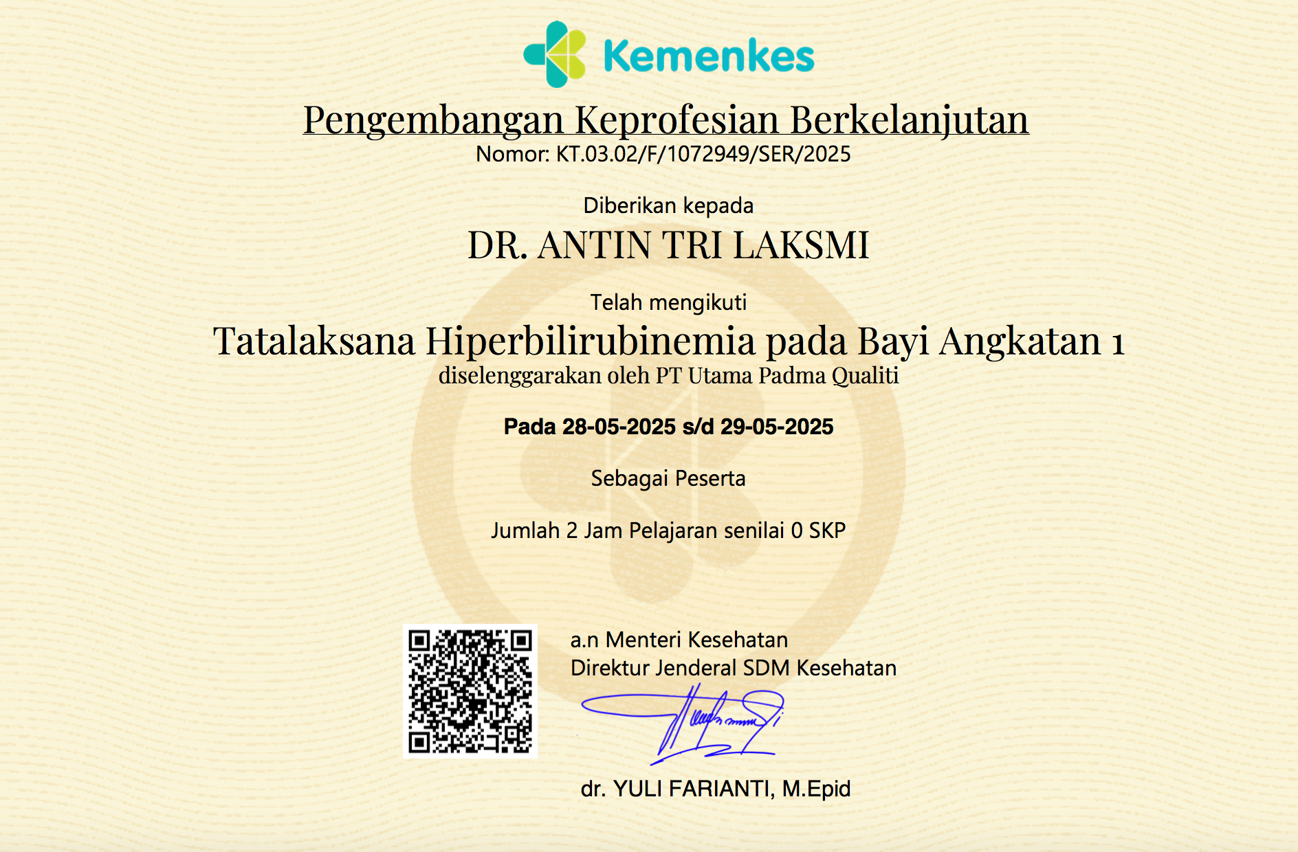 sewrtifikat Tatalaksana Hiperbilirubinemia pada Bayi Angkatan 1
