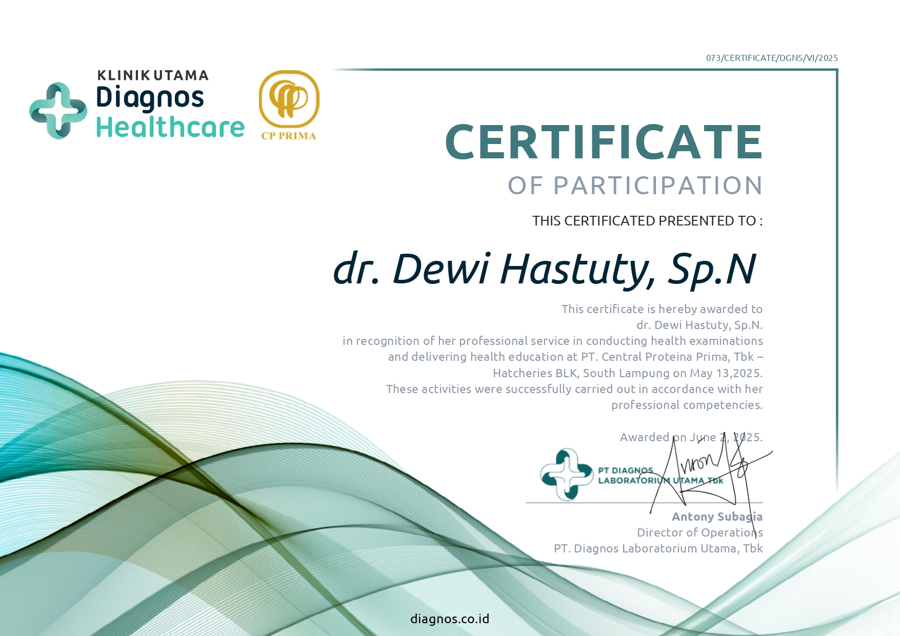 Dewi Hastuty_Sertifikat PKM Risiko LBP pada pekerja Tambak Hatchery_PT CP Prima Lampung Selatan_13 Mei 25