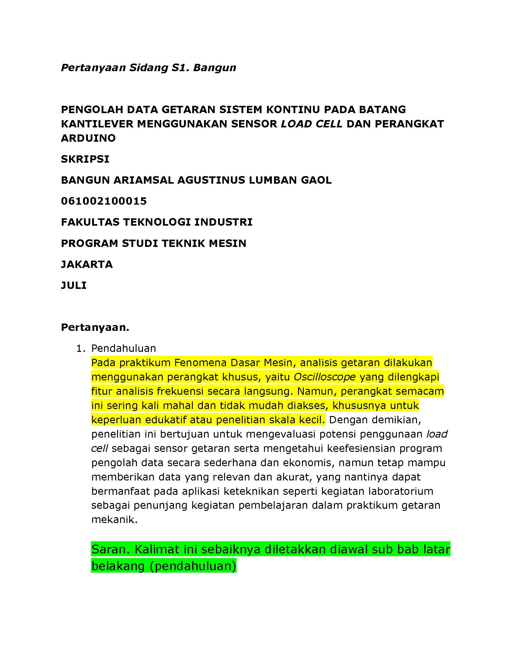 merupakan pertanyaan yang diajukan dody prayitno sebagai dosen penguji pada sidang s1 bangun ariamsal agustinus lumban gaol. semester genap 2024 2025