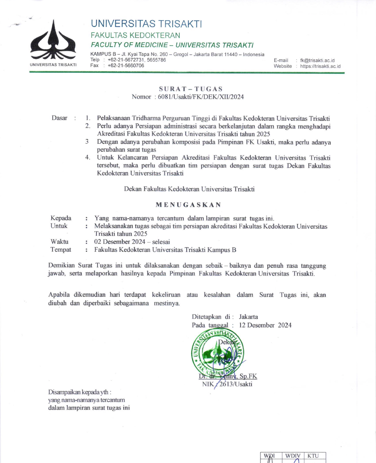 Surat Tugas Tim Akreditasi FK 2025
