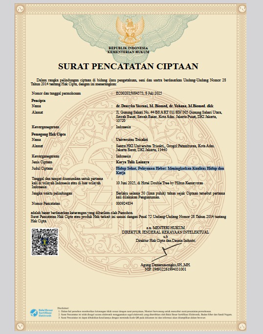 Sertifikat HKI Hidup Sehat, Pelayanan Hebat: Meningkatkan Kualitas Hidup dan Kerja