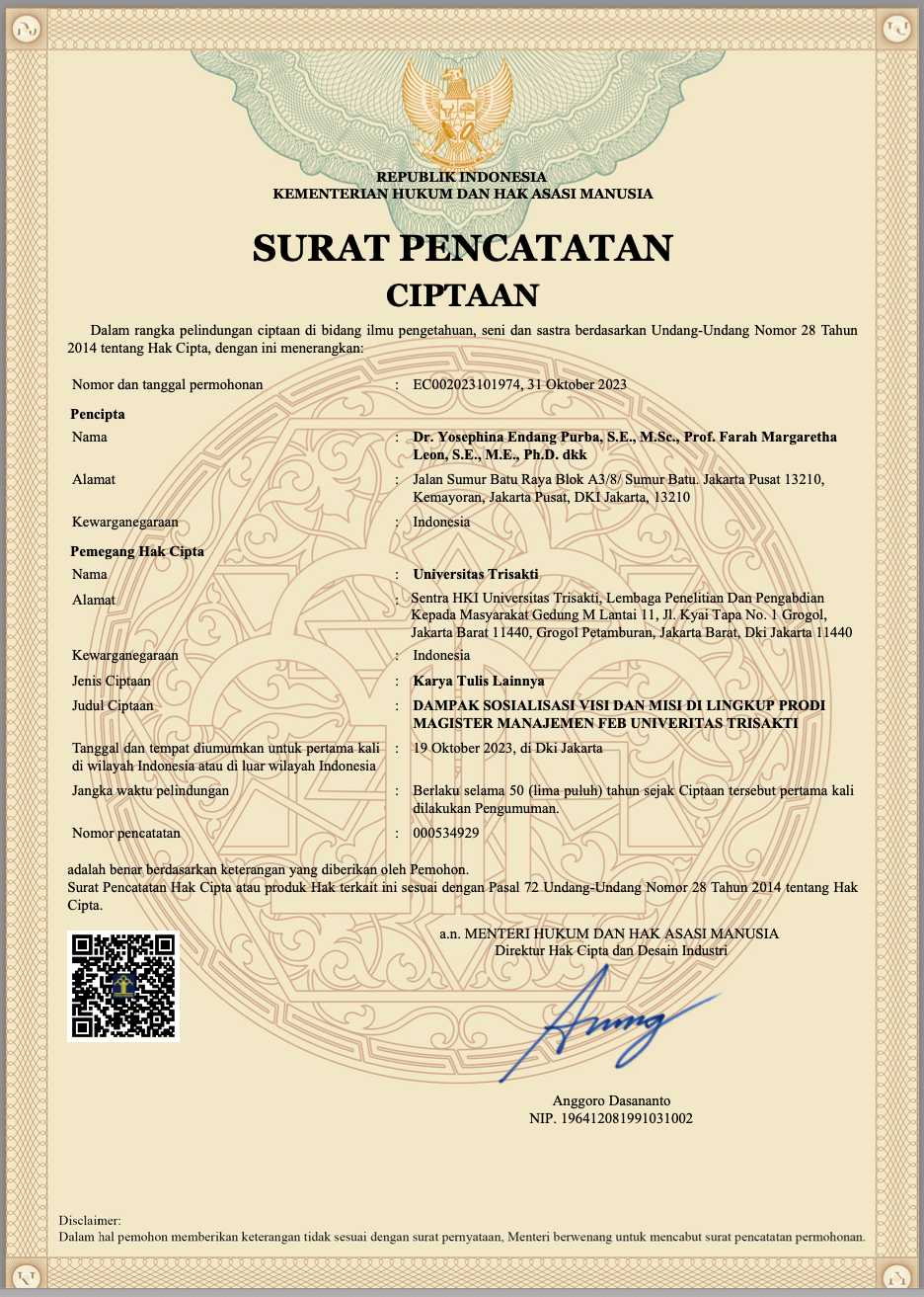 HKI DAMPAK SOSIALISASI VISI DAN MISI DI LINGKUP PRODI MAGISTER MANAJEMEN FEB UNIVERITAS TRISAKTI