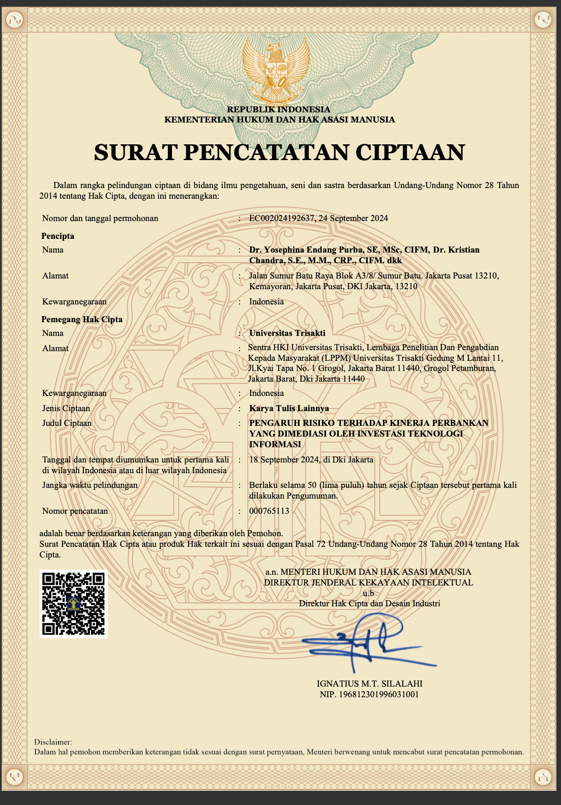 HKI PENGARUH RISIKO TERHADAP KINERJA PERBANKAN YANG DIMEDIASI OLEH INVESTASI TEKNOLOGI INFORMASI