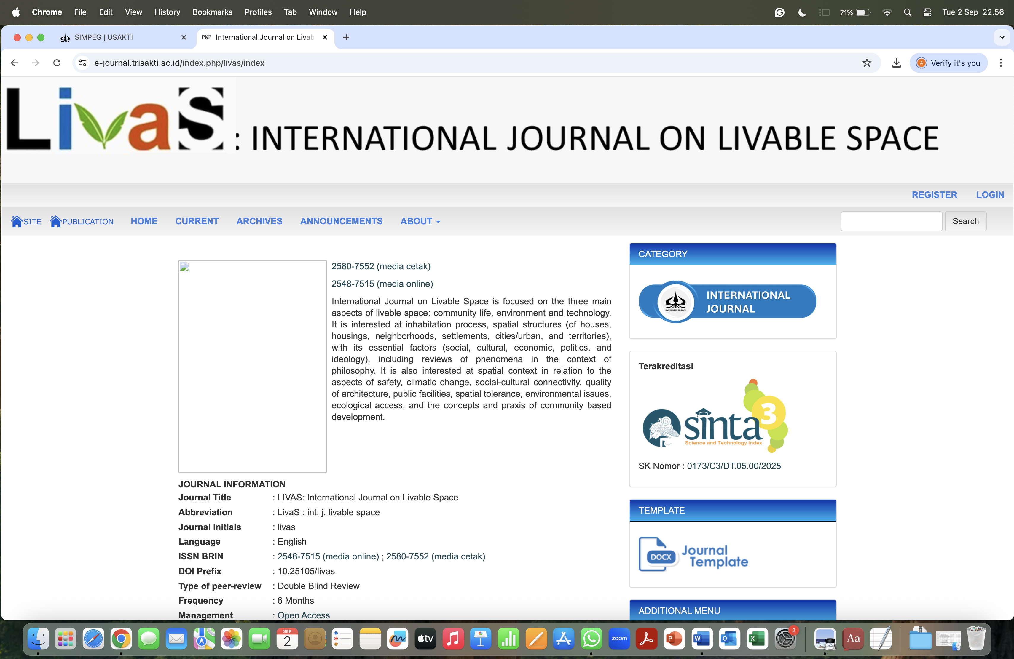Surat Tugas sebagai Pengelola Jurnal Internasional terakreditasi Sinta-3 dan bukti kinerja berupa halaman cover dan editor jurnal Livas.