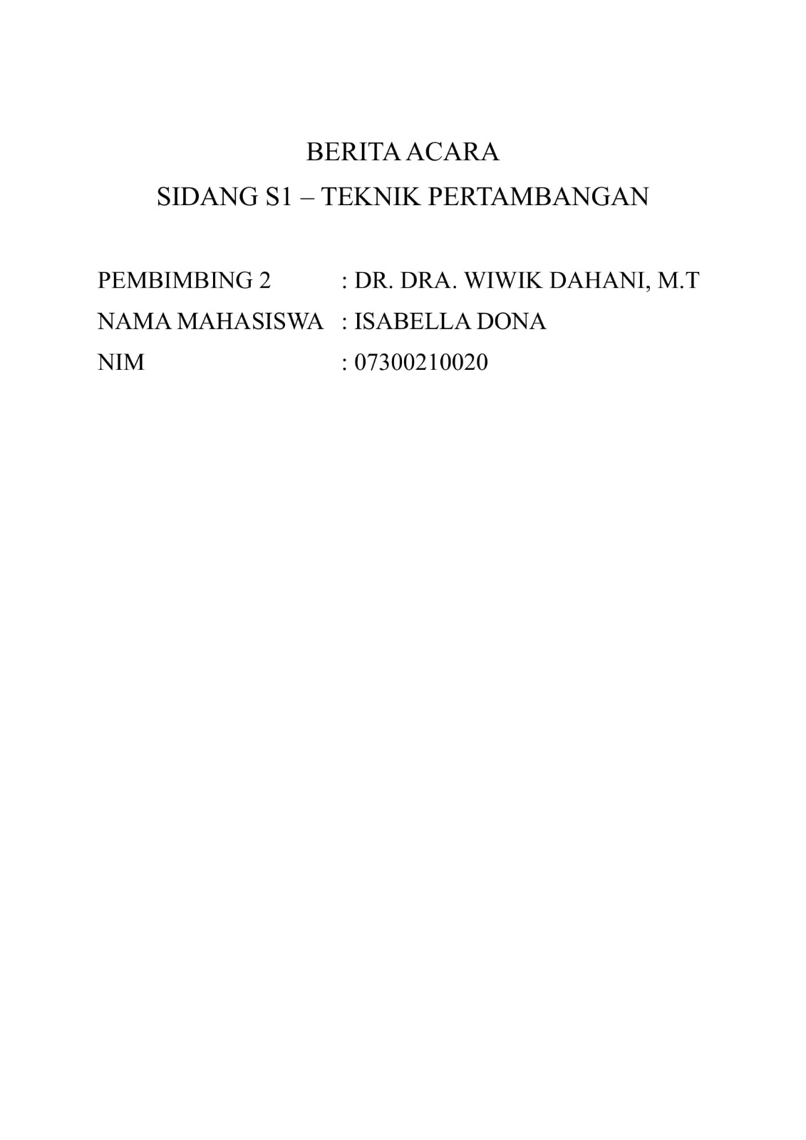 Berita acara sidang mahasiswa bimbingan S1. Isabella Donna 07300210020