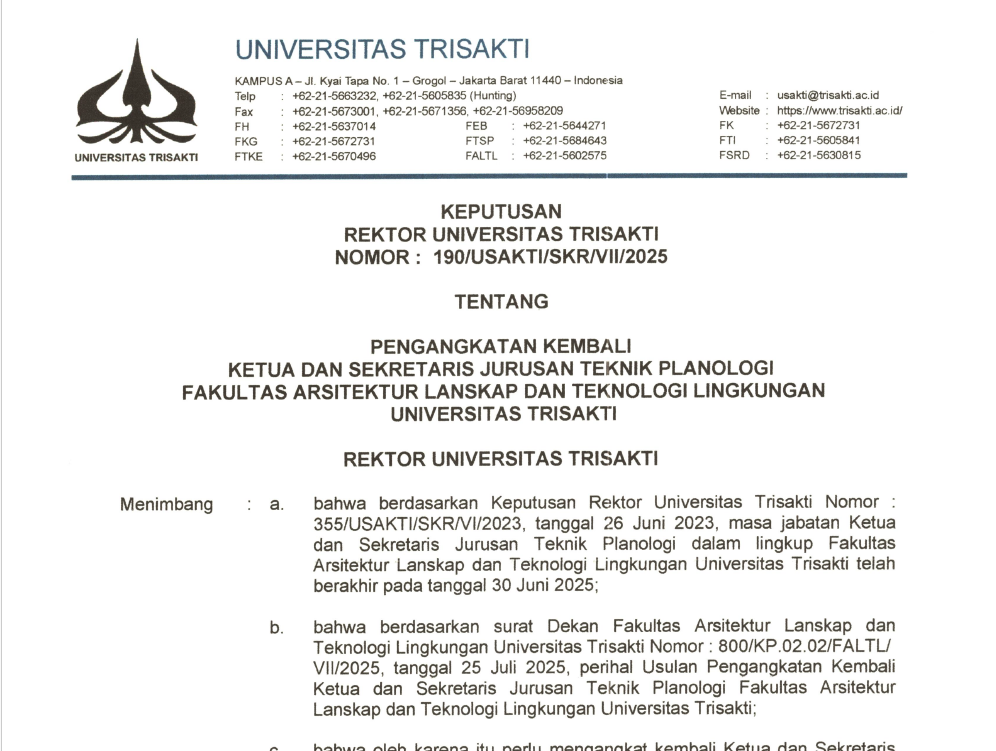 SKR Pengangkatan Kembali Kajur Sekjur PL 2025 - 2027
