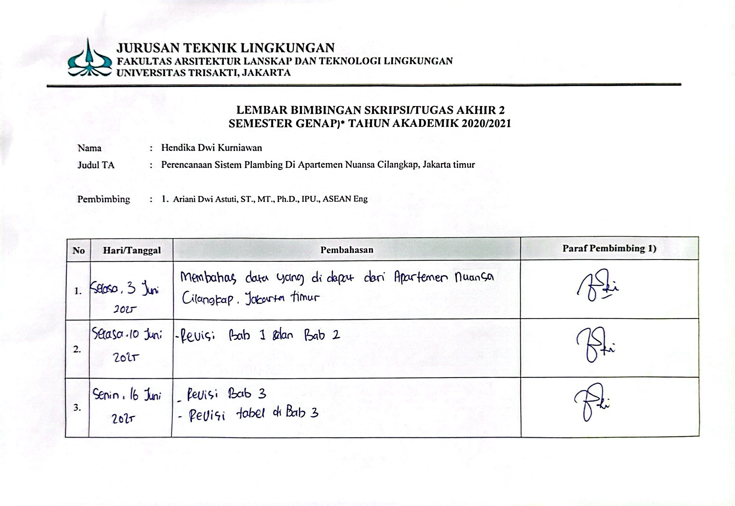 Lembar bimbingan Skripsi mahasiswa Hendika Dwi Kurniawan