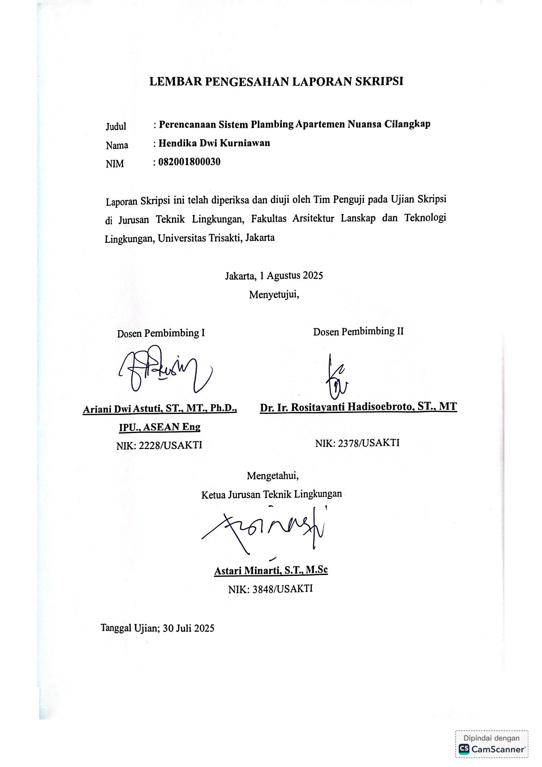 Lembar Pengesahan Skripsi Semester Genap 2024/2025 mahasiswa Hendika Dwi Kurniawan