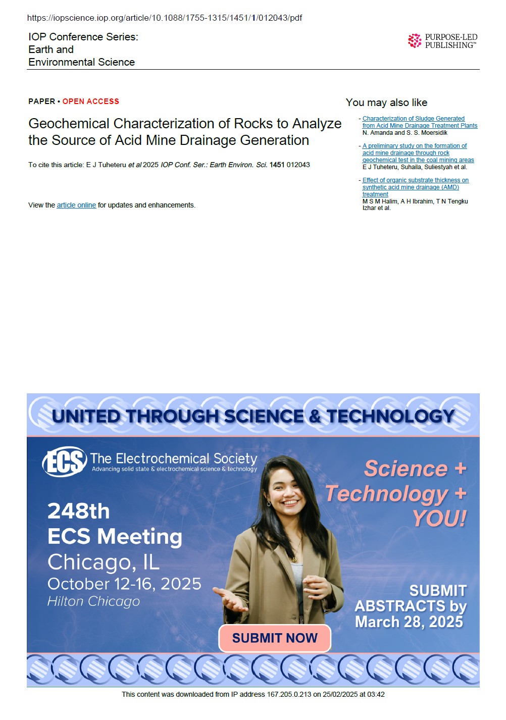 PT. Batubara Lahat, located in South Sumatra province, is a company that conducts coal mining using the open pit method. The open pit mining method creates a flow of water that has low pH properties commonly known as acid mine drainage and then becomes one in the lowest area of mining which is commonly called a sump. Acid mine drainage is water produced through oxidation of sulfide minerals in rocks by oxygen in the air in an aqueous environment.